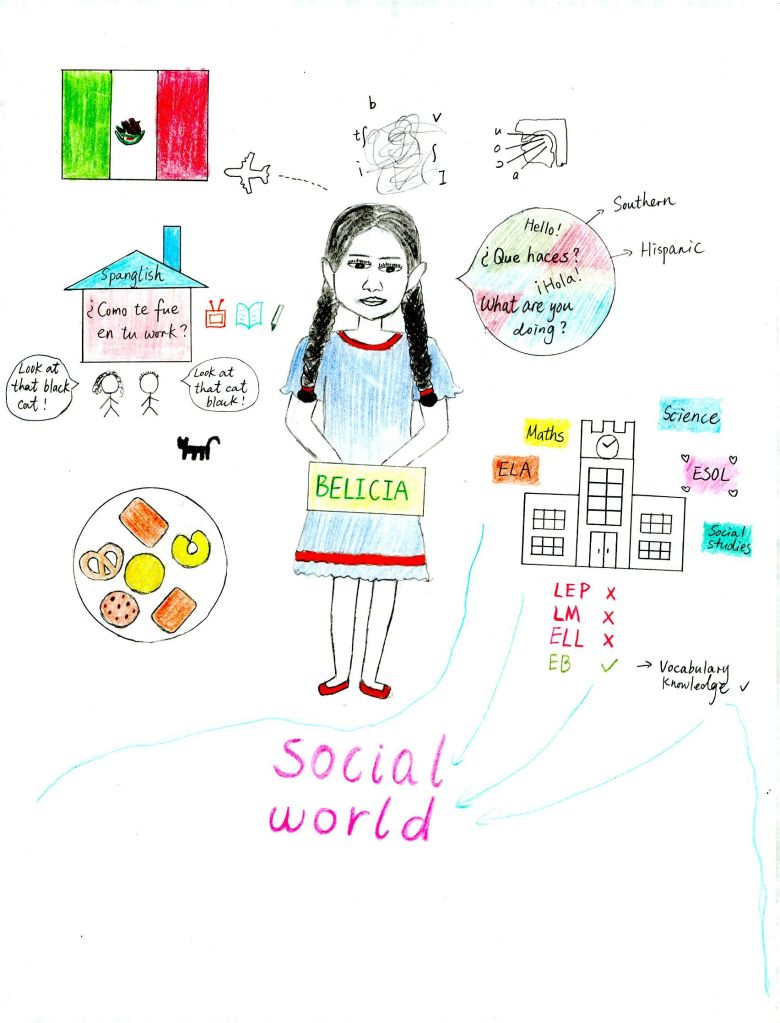 Belicia was a junior when this study was being conducted. She was from central Florida. Belicia’s parents were immigrants from Mexico, but she was born and raised in the United States. She visited Mexico every few years with her parents. Belicia was raised in Spanish-speaking household, and she learned English mainly from school. She was the only one that had been placed in the ESOL program among the four participants. Belicia was fluent in both Spanish and English.